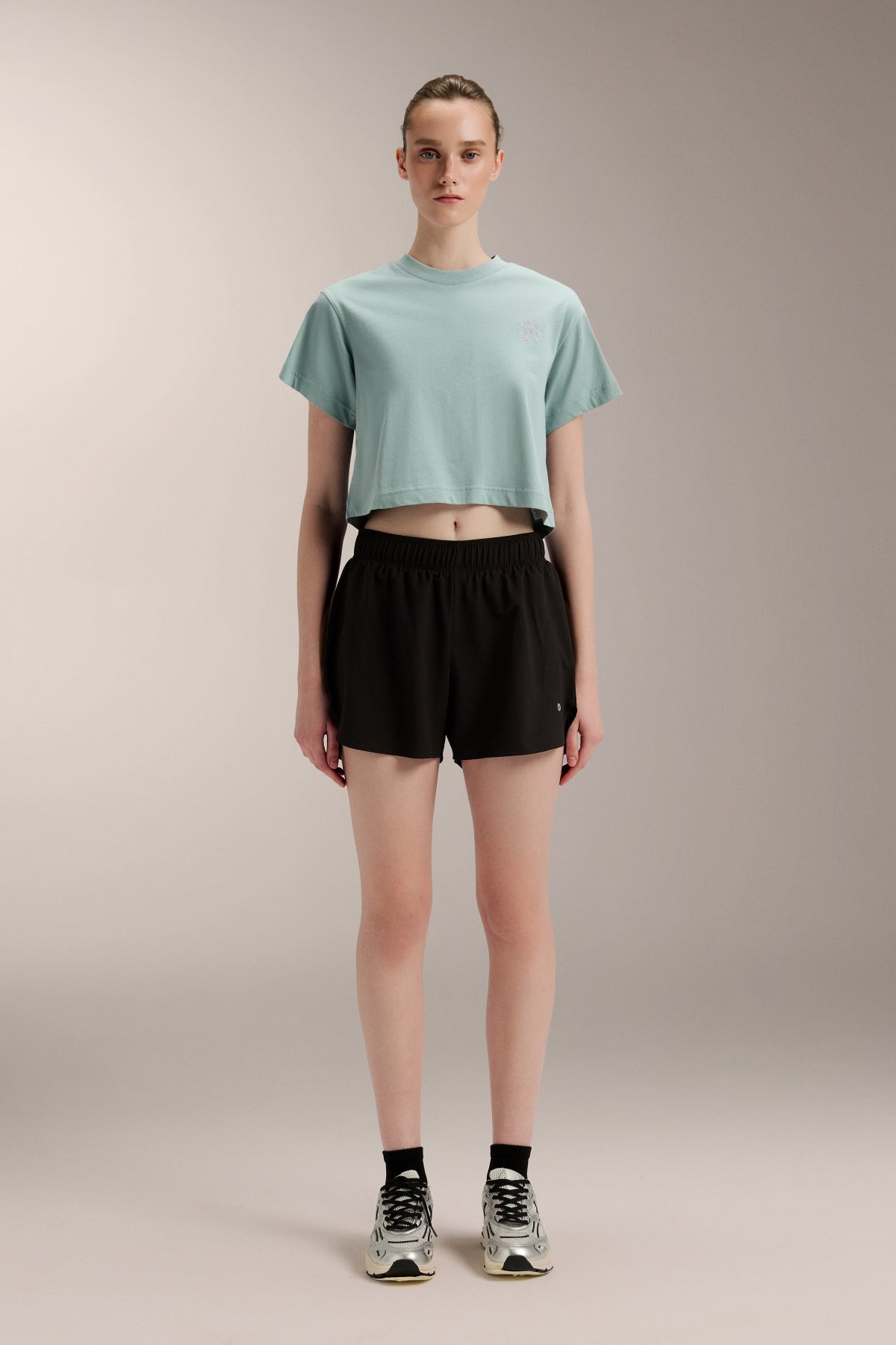 Cropped Boxed Graphic Tee - TER109 PaleAqua