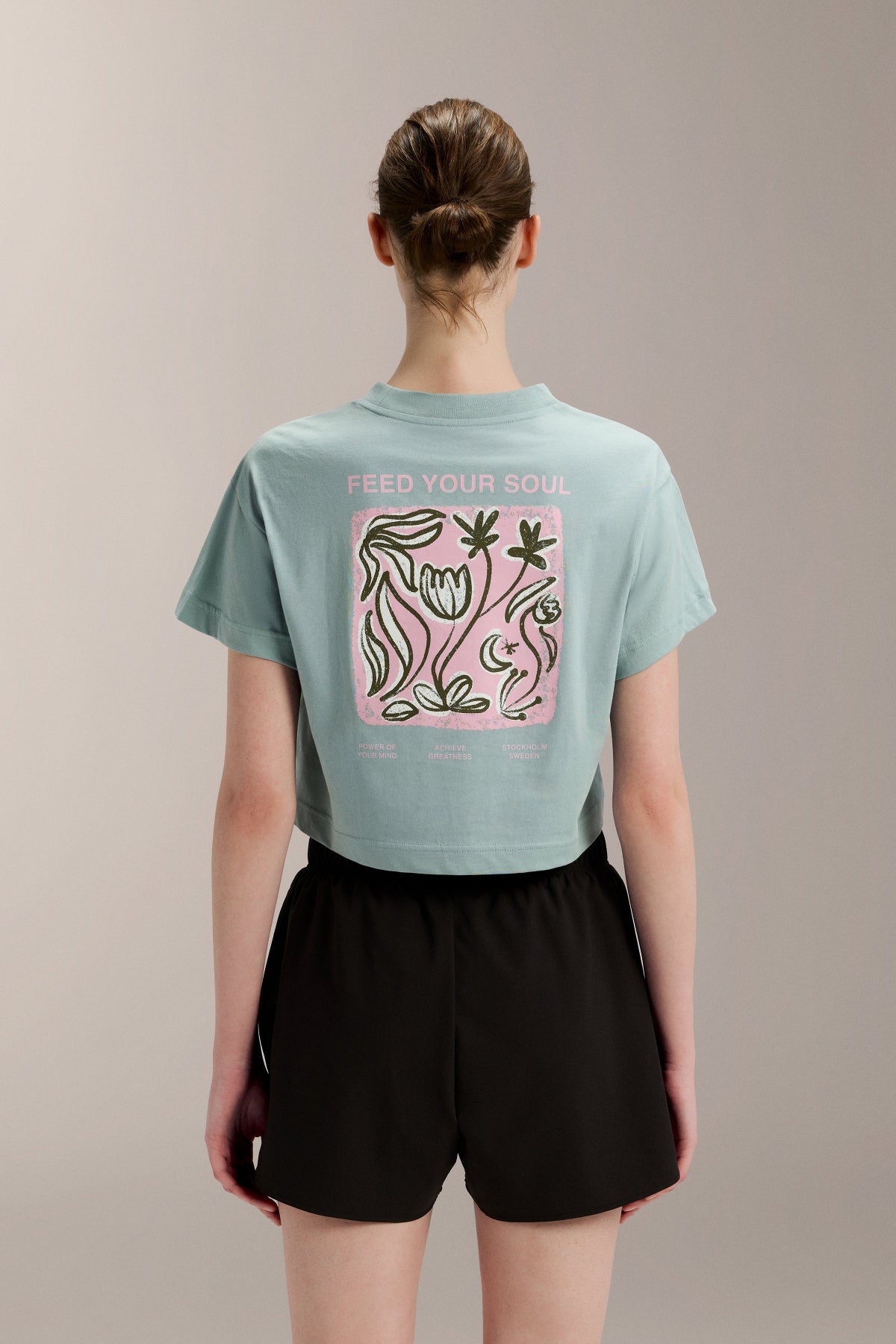 The versatility of this tee means it can easily be paired with high-waisted jeans or layered under a jacket. Suitable for any casual setting, the 'Feed your soul' message makes it a great conversation starter, connecting like-minded individuals who appreciate distinctive style. Make this timeless piece a staple in your collection.